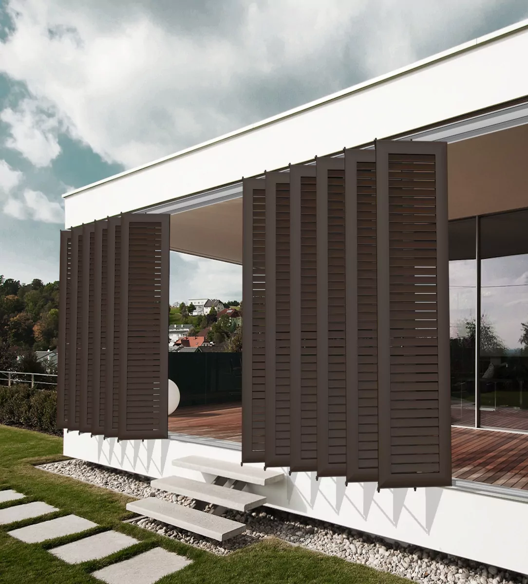 Ein Architektonisches Highlight, welches auch für eine angenehme Lichtstimmung sorgt, sind die Faltscherenläden. Modernste elektrische Antriebstechnik und Steuerung machen sie zu einer faszinierenden Alternative zu Klapp-, Schiebe- und Faltschiebeläden.
