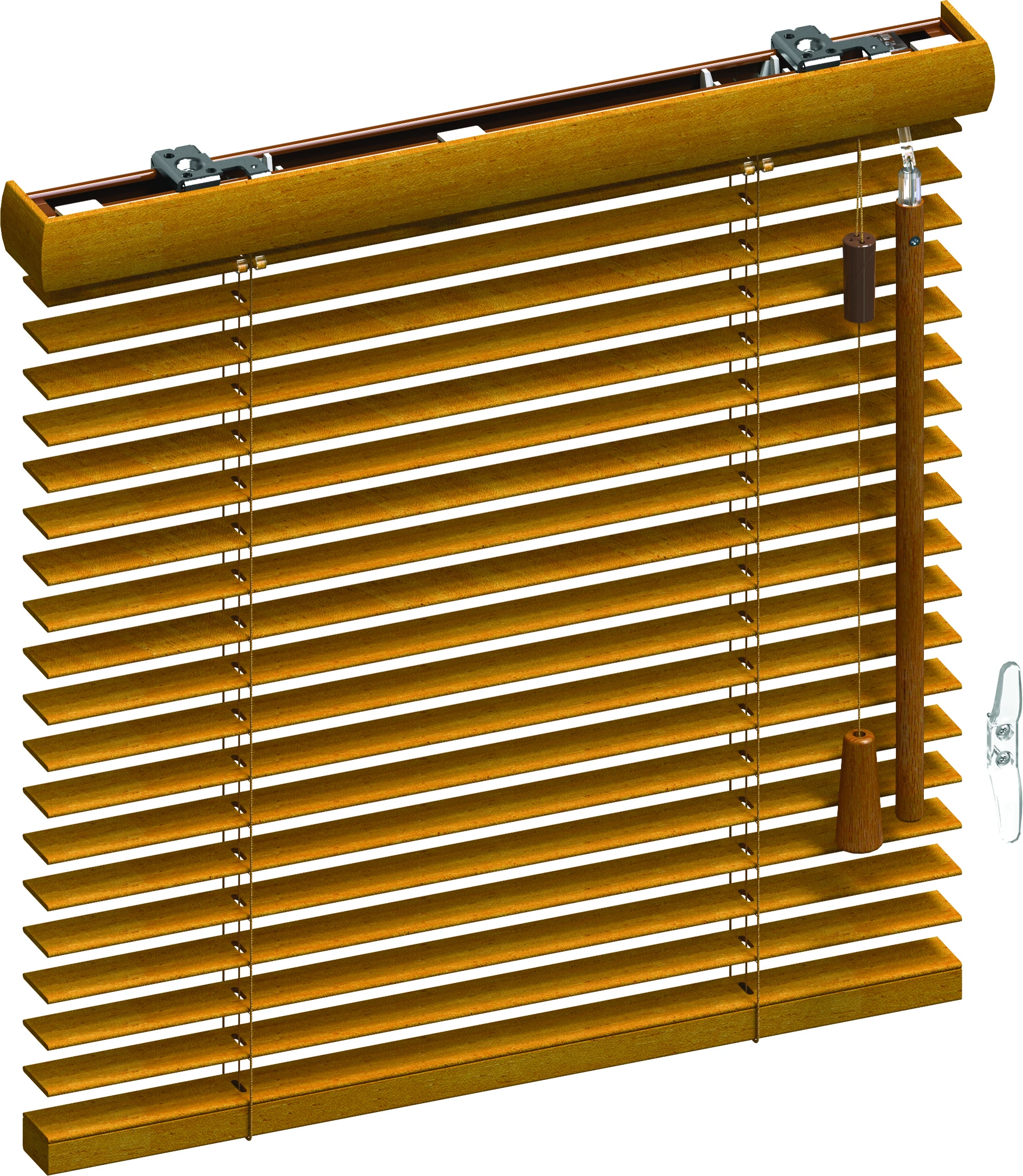 Schematische Darstellung einer Holz- Bambus Jalousie mit dem Twin Pull System